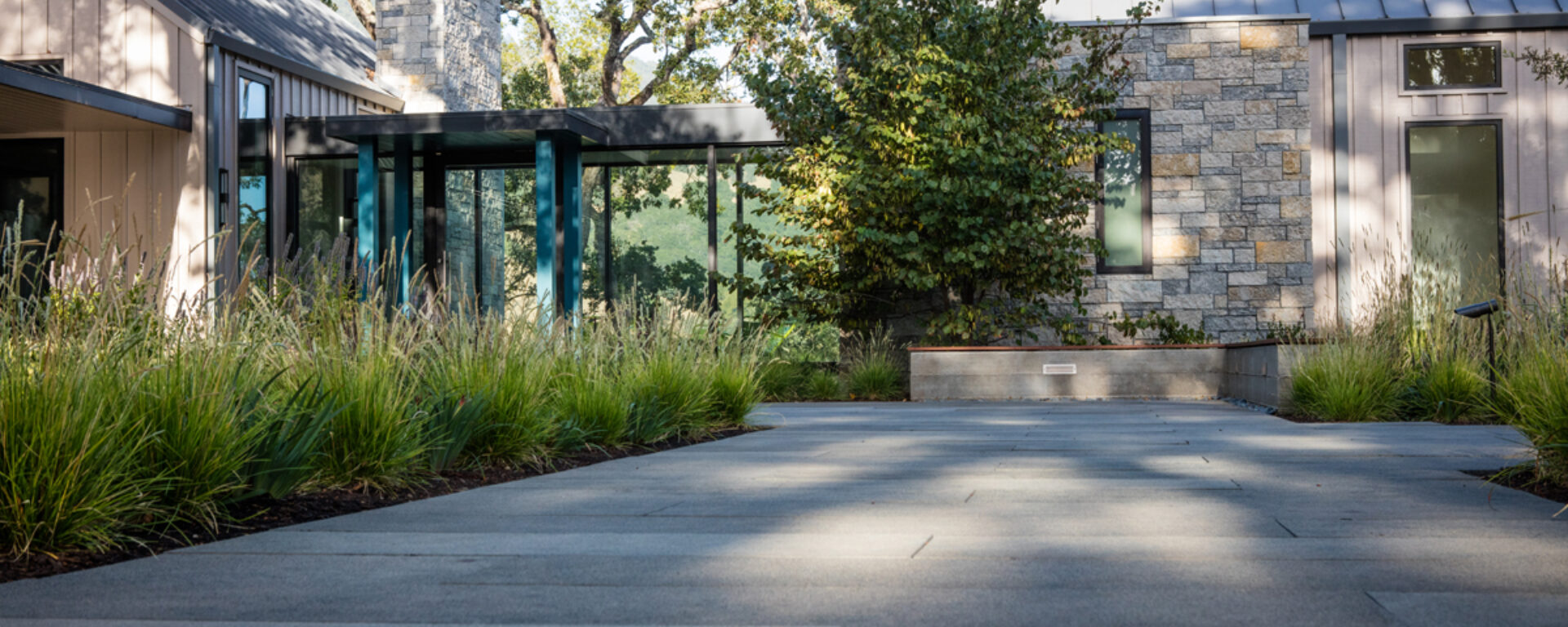 For this outdoor oasis, we used Natural Stone Dimensional Paving and Black Knight Flamed and Brushed Paving on the residence’s patios, walkways, and pool decks to create a naturally cohesive haven.Applications